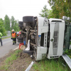 Řidiči, pozor! Na 24. kilometru D10 ve směru na Prahu se převrátil kamion. Cesta zůstane uzavřená až do 15:00 v obou směrech.